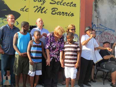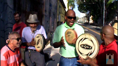 pleneros del barrio improvisando versos sobre Puerta de Tierra y