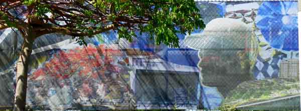 construcción del proyecto Bahía Urbana. El mural está a cargo del