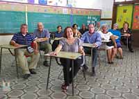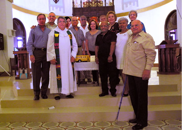 Ernesto Félix, Emérita Castro y Manuel E. Miranda. Al fondo: Isabelo Rivera, Milagros, Rodoberto Feo, Mario Fitzpatrick, Nola Pabón, Padre Miguel, Georgine Bernart y Elba Fontánez.