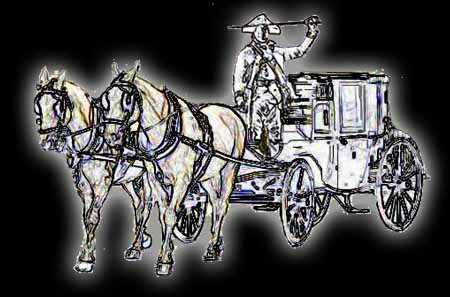 tells his guests, a team of whíte horses attached to a coach dashes up