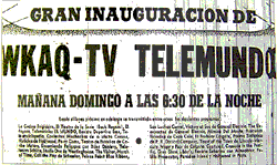 El 28 de marzo de 1954 se transmitió por WKAQ la primera