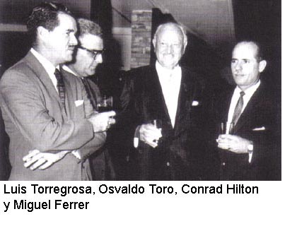Conrad N. Hilton, presidente de Hilton Hotels Corporation, había iniciado en 1943 una activa campaña de compra de hoteles en Estados Unidos, y logró que su compañía fuera la primera de su clase en ingresar en el mercado de bonos de Wall Street. Hilton aceptó la invitación que le hizo Teodoro Moscoso, presidente de la Compañía de Fomento Industrial, para administrar un hotel en Puerto Rico, con lo cual inició su propio proyecto de una cadena hotelera de alcance mundial.