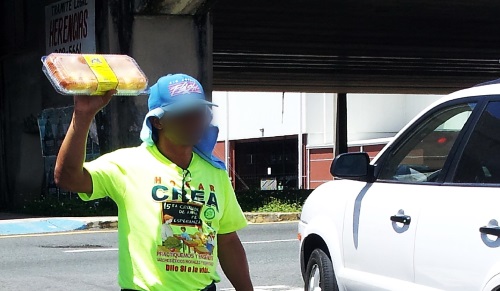 de Hogar CREA vende un bizcocho en un semáforo del área