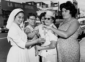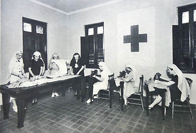 Voluntarias confeccionando ropa. Álbum de Oro de