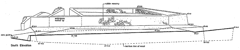 Para el 1954 la fortificación estaba rodeada por un foso seco,
