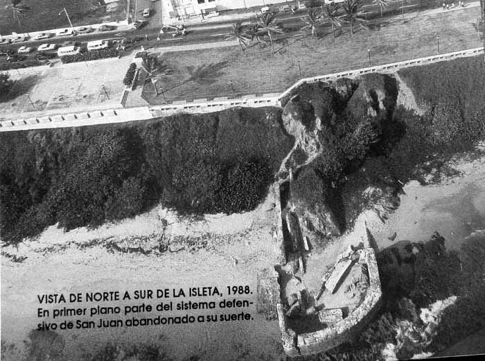 Durante la primera mitad del siglo XIX se cavó un gran zanjón defensivo o cortadura, conocido como "el trincherón" que partiendo desde la costa norte, a unas cien yardas al este del fuerte de la Princesa, atravesaba en línea recta la Isleta en toda su anchura, yendo a morir en los manglares de su costa sur (Adolfo de Hostos). |