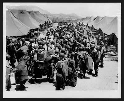 Tropas de la Guardia Nacional arribando a campamento en Salinas para recibir adiestramiento.