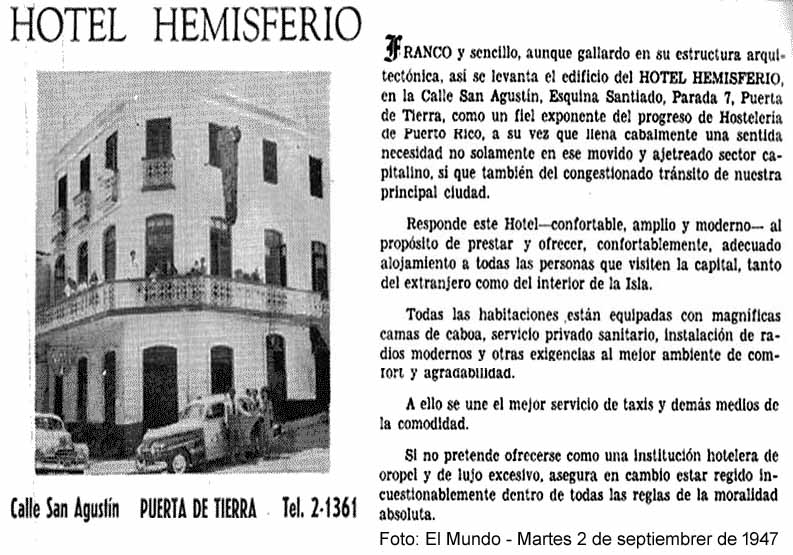 El hotel Hemisferio era una hospedería de ambiente familiar en la que se cobraban $5.00 la noche a dos personas, y $2.50 a huéspedes solos. Como su dueño sufrió discrimen y racismo durante su servicio militar en el Navy por ser afrodescendiente, él siempre quiso tener puertas abiertas para todo tipo de huéspedes sin fijarse en raza, color, nacionalidad o género. Dos huéspedes destacados que se hospedaron en el hotel Hemisferio fueron el beisbolero Willie Mays y la cantante Marian Anderson, ya que en ningún otro hotel los admitían por su color. En el Hotel Hemisferio tampoco se permitía el discrimen por clase social, ya que también se hospedaban en él muelleros y obreros que trabajaban en el barrio mismo.