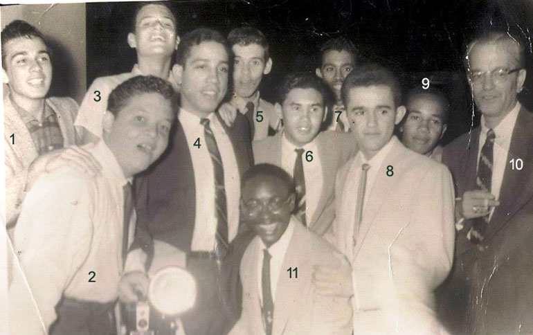 1. Benjamín Negrón, 2. Juvenal Acevedo, Jr. 3. Alejandro Santos. 4. Mario Miranda. 5. Luis Fernando Gallardo. 6. Rafael "Chino" Linares. 7. Johnny Guzmán. 8. Wilfredo
