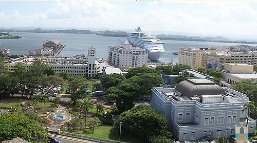 de Puerto Rico, en medio, Escuela José Julián Acosta y al fondo el