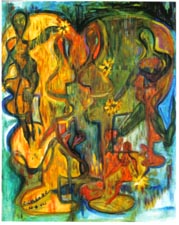 "Adán y Eva" (óleo/canvas) 16 x 20