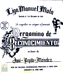 Pepito Méndez recibe reconocimiento por su servicio al deporte en Puerto Rico, otorgado por el entonces Gobernador Luis A. Ferré. 1971