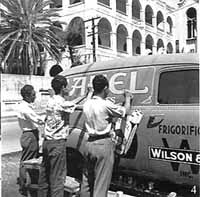 pintando rótulos en la avenida Ponce de León, frente al taller de