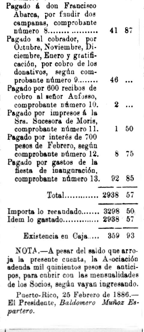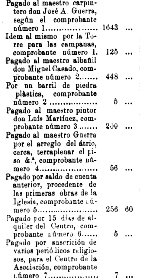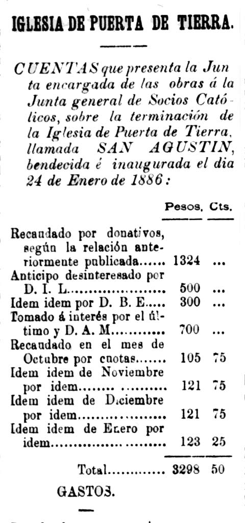 Cuentas de las obras de terminación de la Iglesia San Agustín Miércoles, 3 de marzo de 1886