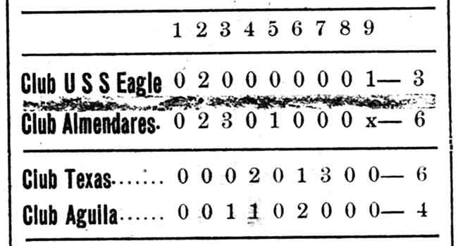 A las 2 p. m. dio principio el primer turno entre Ios clubs "Almendares" y "U. S. S. Eagle."