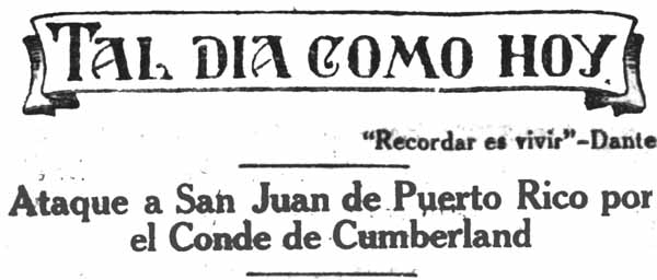 Una de las más notables ocurrencias del año 1598 fue la décima y última expedición particular de George Clifford, el famoso marino y aventurero Conde de Cumberland, contra los españoles. El padre había sido elevado a la dignidad de Conde en 1525, por Enrique VIII, y fue el primer súbdito inglés que construyó un buque de 800 toneladas, buque que luego empleó en muchas acciones contra los españoles, particularmente en los mares de las Antillas.