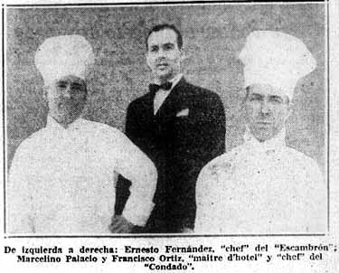 A cargo de la cocina del Hotel Condado se halla ahora el "chef" Francisco Ortíz, cuya brillante hoja de servicios comprende hospederías tan famosas como el "Skaiting Palace" de París; el Hotel Rítz y Casa Turnier de Madrid; el Hotel de France en Biarritz; el "Continental" de San Sebastián; el "Imperial de Madrid y el Waldorf Astoria y "Old Algiers" de Nueva York. Chef Ortiz es miembro del club de jefes de cocina "Epicure de la Cuisíne Tecnique Mundial".