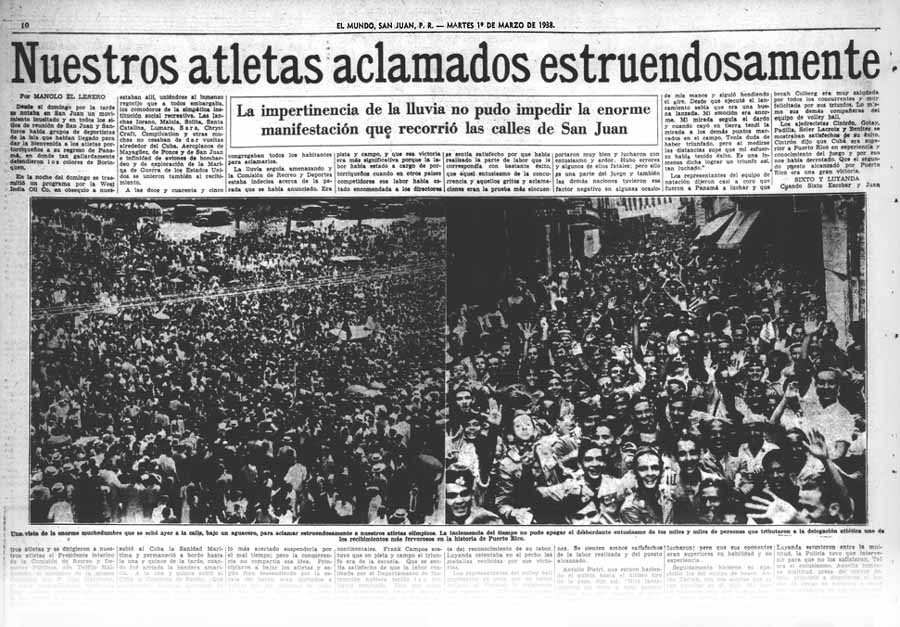 El Mundo martes 1 de marzo de 1938 página 10 Nuestros atletas aclamados estrenduosamente