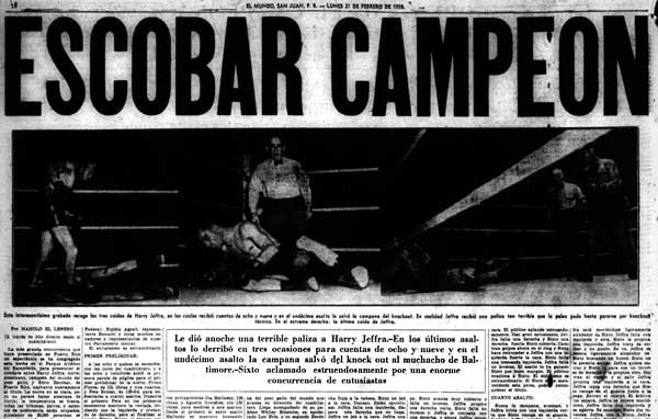 peso gallo, y Sixto Escobar, de Puerto Rico, aspirante nuevamente al titulo. La noche no es clara, pero no parece haber