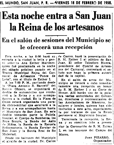 pueblos de la Isla, el baile promete quedar muy concurrido. La señorita Ana Esther Martínez, la simpática y