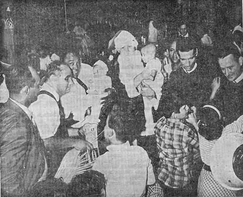 | Por Pepo Talavera El pasado jueves en horas de la tarde se celebró una amena y regia fiesta de Navidad en los salones del club nocturno La Riviera de Puerta de Tierra, propiedad del continental Anthony Tursi. Al acto concurrieron más de 500 niños, todos estudiantes del Colegio San Agustín de Puerta de Tierra y residentes de los caseríos de dicha barriada. Esta fiesta navideña la viene ofreciendo a los niños de Puerta de Tierra el señor Tursi, desde hace tres años. Además de los niños concurrieron numerosos padres de los homenajeados. Los peloteros José Rafael "Palillo" Santiago y Tony Taylor de los Senadores de San Juan hicieron entrega de numerosos regalos a los niños. También asistieron al acto el ex lanzador profesional y actual escucha de los Cubs de Chicago, "coach" del San Juan, José Guillermo "Pantalones" Santiago y los padres redentoristas del Colegio San Agustín, de Puerta de Tierra, Louis Drum y José Mathews. Una banda de acero amenizó el acto y los niños bailaron por bastante tiempo, muy en especial los modernos bailes de "a-go-go". También un gran número de artistas de nuestra televisión y la radio, ofrecieron magnificas demostraciones en un variado y ameno programa que se ofreció a todos los presentes. El pelotero "Palillo" Santiago se disfrazó de Santa Claus y fue la nota culminante de la actividad. Los niños tan pronto lo vieron se le avalanzaron encima y bajo una gritería ensordecedora, comenzó el gran lanzador de los Senadores y las Medias Rojas de Boston, a repartir juguetes a todos los niños y niñas que asistieron a este simpático acto. La actividad comenzó a la una y treinta de la tarde. Juan "Terín" Pizarró astro lanzador de los Cangrejeros de Santurce, también estuvo presente y compartió por largo rato con los niños y éstos no se cansaban de hacerles preguntas y le pedían constantemente que les obsequiara con su firma, la cual lo hacía en papeles, juguetes y otros enseres de estas fiestas navideñas. |