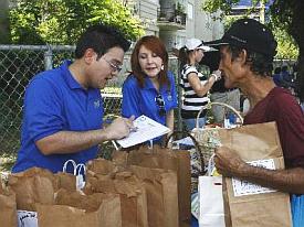 informativos de manos de dos voluntarios. Ángel M.