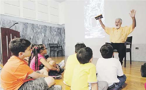 La Academia Puertorriqueña de la Historia rendirá tributo al profesor Samuel Silva Gotay en una ceremonia especial el próximo 7 de marzo. En esta foto de archivo, tomada el 23 de febrero de 2013, el destacado escritor se dirige a un grupo de niños durante la presentación de su libro “Las aventuras de Juan Cecilio en la Ciudad Pérdida”, durante un evento efectuado en la Biblioteca Nacional.