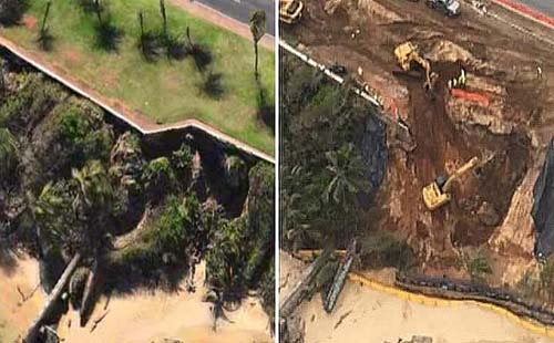 De acuerdo con la secretaria del DRNA, Carmen Guerrero, la erosión es consecuencia de un sistema pluvial antiguo que se deterioró con el paso del tiempo que provocó que se crearan profundas zanjas. No fueron causadas por el mar, aclaró.