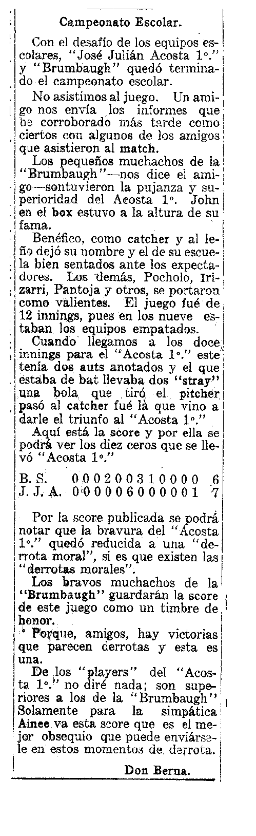 Desafío entre escuelas "Acosta" y "Brumbaugh"