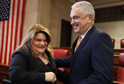 Jenniffer González junto al presidente del Senado, Thomas Rivera Schatz |