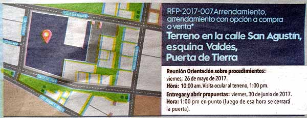 El aviso público de solicitud de propuestas informa que desde esta semana estarán disponibles los pliegos relacionados a las propiedades y que los interesados tendrán hasta el 30 de junio para someter sus ofertas.