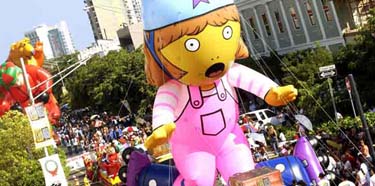 Igualmente los globos de Elmo que, desplegando su peculiar sonrisa y con una pecera en mano, fue detenido para que el público pudiera tomarle fotos. Entre los más esperados de la tarde estuvieron los globos de Strawberry Shortcake y el de Hello Kitty.