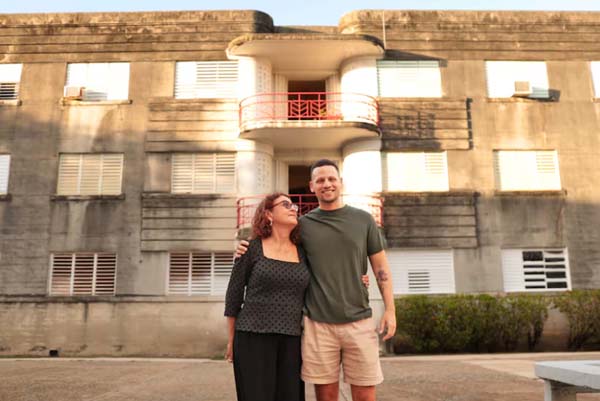 Rodeados por fachadas de cemento expuesto, con extraños balcones curvados que parecen sacados de alguna película retrofuturista, dos cineastas esperan, sentados sobre un banco, mientras el mundo de concreto en el que se encuentran comienza a cubrirlos con su sombra. Aquí, de cierto modo, empezaron muchas cosas, mucho antes de que pusieran sus lentes sobre estos lares. El Falansterio de Puerta de Tierra, diseñado bajo el peculiar estilo del Art Deco, fue el primer proyecto de vivienda pública construido en Puerto Rico.