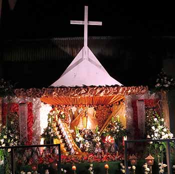 “Regularmente se hace un altar con el santo de la predilección del padrino o la madrina que lo hace por una promesa o devoción a un santo. Mis misas duran tres días y tengo la meta que duren nueve. La gente se sienta de frente al altar decorado por José de León, a cantarle a la cruz; y al final se reparte todo lo que está en el altar. La parte religiosa comienza a las 8:00 pm y la popular a las diez”, añadió Vélez.