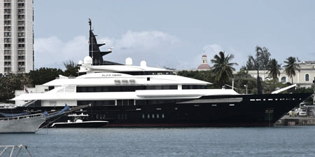 El despampanante yate Alfa Nero, uno de los más grandes y lujosos del mundo, llegó esta mañana a la Bahía de San Juan, donde se le realizarán trabajos de reparación y mantenimiento.