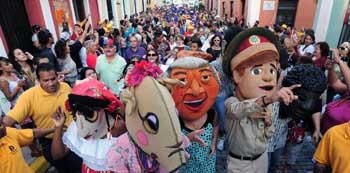 Desde allí, los cabezudos, que caricaturizan reconocidas personalidades como el comediante Ramón Rivero "Diplo", el salsero Andy Montañez, el compositor Catalino "Tite" Curet Alonso, Meléndez, los personajes infantiles Juan Bobo y la Puerca, y la cantante Ruth Fernández, arribaron a la Catedral de San Juan.