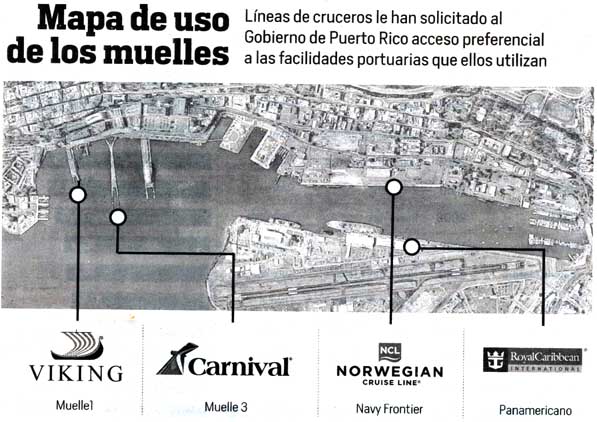 "En la convención de cruceros que hubo aquí recientemente los ejecutivos de Royal Caribbean y de Carnival se reunieron con la gobernadora para decirle que no privatizara los muelles, que si hacía falta dinero para arreglar los muelles, ellos lo pondrían", dijo una de las fuentes que prefirió no se divulgara su nombre.