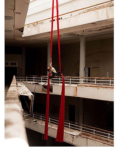 interpretando un baile colgando en el interior del hotel Normandie