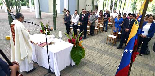 Desde la misa con la que se iniciaron los actos, hasta la actividad oficial en el monumento a Simón Bolívar que se ubica en dicho parque, la figura del fenecido presidente venezolano, Hugo Chávez estuvo presente, tanto por la foto que presidió los mismos, como por los distintos mensajes que se ofrecieron.