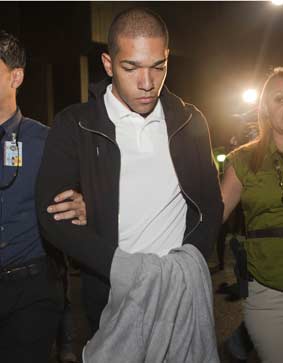 El joven adulto llegó cerca de las 7:00 p.m. a la fiscalía de San Juan, para ser entrevistado sobre el accidente de tránsito en el que el trío de corredores se ejercitaba a eso de las 6:50 a.m. por el carril de la Autoridad Metropolitana de Autobuses. Allí estuvo acompañado por su abogado Wilfredo Díaz Narváez. Luego fue trasladado al tribunal para someterle los cargos.