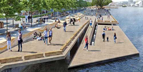 Mejorar la infraestructura y los accesos en el Navy Pier de Puerta de Tierra requerirá una inversión de sobre $130 millones, que se financiará con fondos federales. En la imagen, una representación de cómo quedaría la zona luego de la reconstrucción del "bulkhead" y el paseo peatonal.
