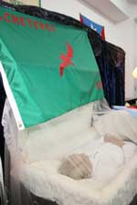 En la pared, había dos banderas de Puerto Rico y en el telón detrás del féretro, había una bandera verde con un machete rojo, símbolo de los Macheteros y la siglas EPB. El líder del Ejército Popular Boricua estará expuesto en el Ateneo hasta hoy al medio día, cuando será llevado al Colegio de Abogados. Allí estará hasta el martes a las 10 a.m. antes de salir a Naguabo, su pueblo natal y donde será enterrado.