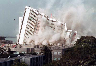 libras de explosivos. El edificio de 13 pisos se desmoronó en