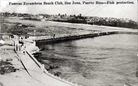 Uno de los lugares que vino a ser, por derecho propio, escenario quintaesencia! del nuevo ritual puertorriqueño del pasadía playero fue el Escambrón Beach Club, un club privado inaugurado el 26 de agosto de 1932, construido por el ingeniero Félix Benítez Rexach. El referido club estaba localizado en el extremo oriental de la isleta de San Juan entre la Punta del Escambrón y el antiguo fuerte de San Jerónimo. En dicha rada protegida del embate del océano Atlántico, Benítez Rexach construyó un paseo tablado sobre el agua que transformó el sitio en lo que los contemporáneos llamaron "la piscina exterior más grande del mundo." En la playa se construyeron casas de baño, un café al aire libre y un salón de baile en el que una orquesta tocaba ritmos puertorriqueños y americanos. Este era el punto de contacto entre los criollos caribeños y los rubios norteños, quienes al ritmo erotizante de las olas, compartían un momento de disfrute de lo que Marc Auge ha llamado "futilidades esenciales."