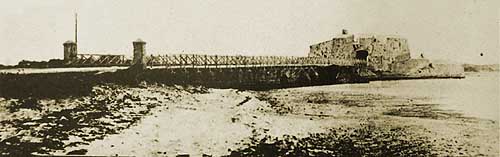 para los peatones. Uno de los tramos de hierro era desmontable para permitir una mejor defensa de la capital y la bahía en caso de ataque militar. El fortín, sin embargo, fue eliminado en 1897, aunque todavía quedaban troneras